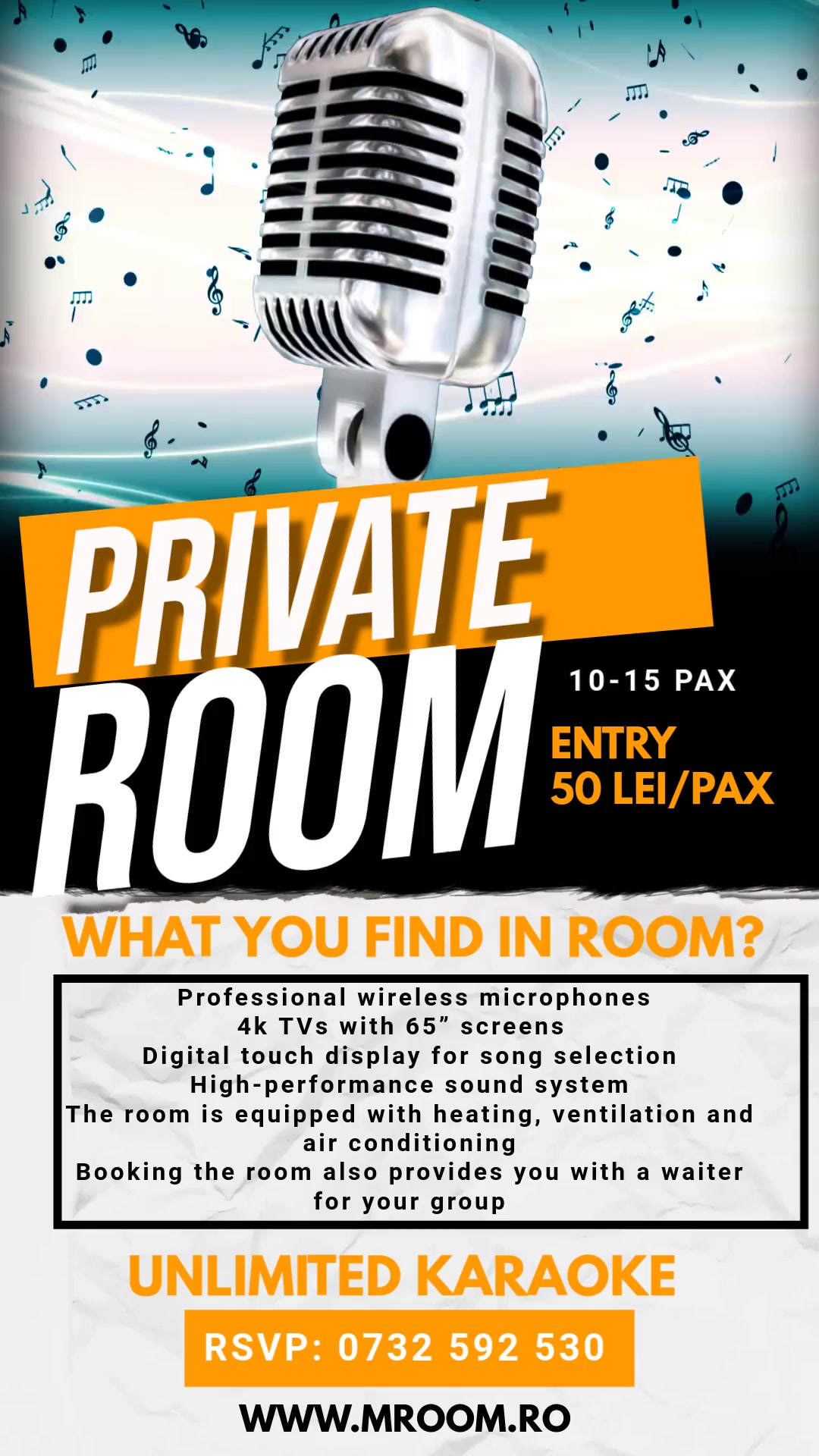 La Mroom, te așteaptă seri de neuitat în private rooms personalizate, o selecție vastă de melodii și un sistem de sunet de excepție. Vino să trăiești magia muzicii și distracției alături de prieteni!